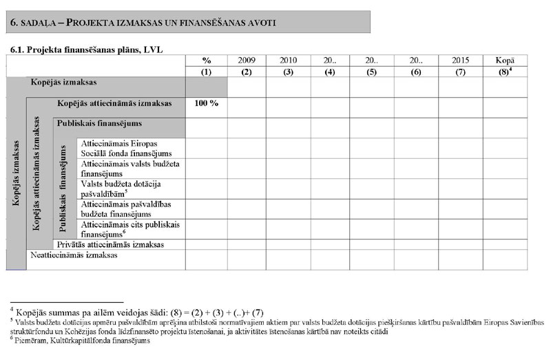 6. Maksimālais pieļaujamais Eiropas Sociālā fonda līdzfinansējuma apmērs ir 85 procenti no projekta attiecināmo izmaksu kopsummas.