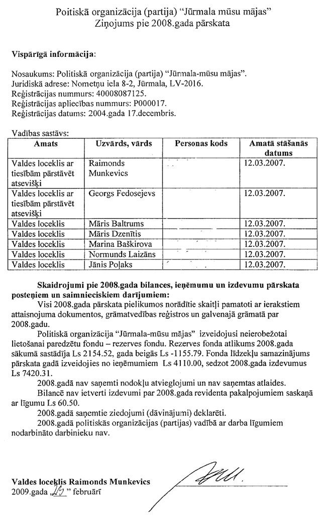 Darbības pārskati. Publicēts oficiālajā laikrakstā "Latvijas Vēstnesis", 12.03.2009., Nr. 40 https://www.vestnesis.lv/ta/id/189001