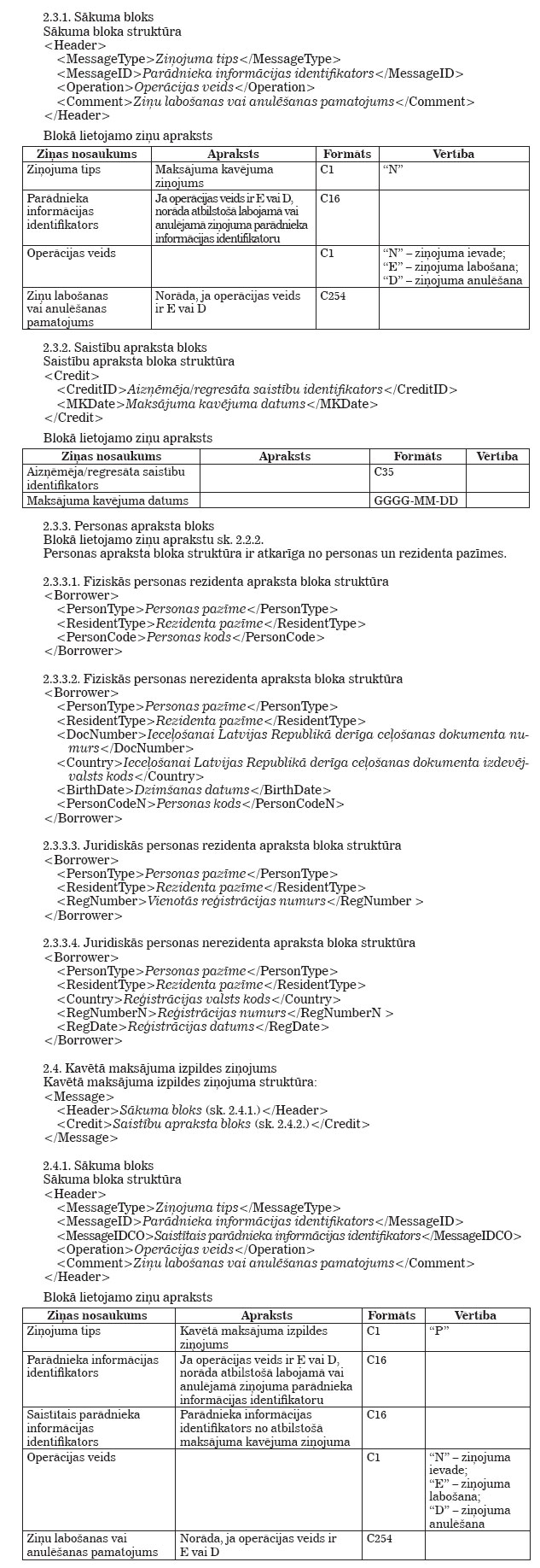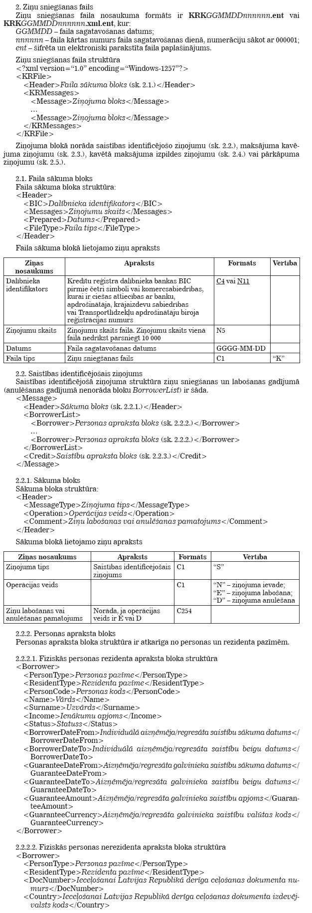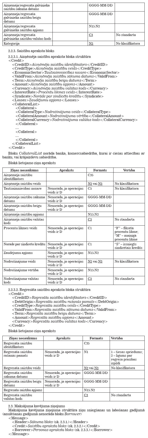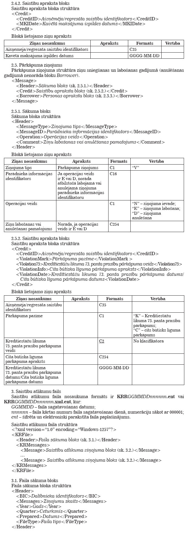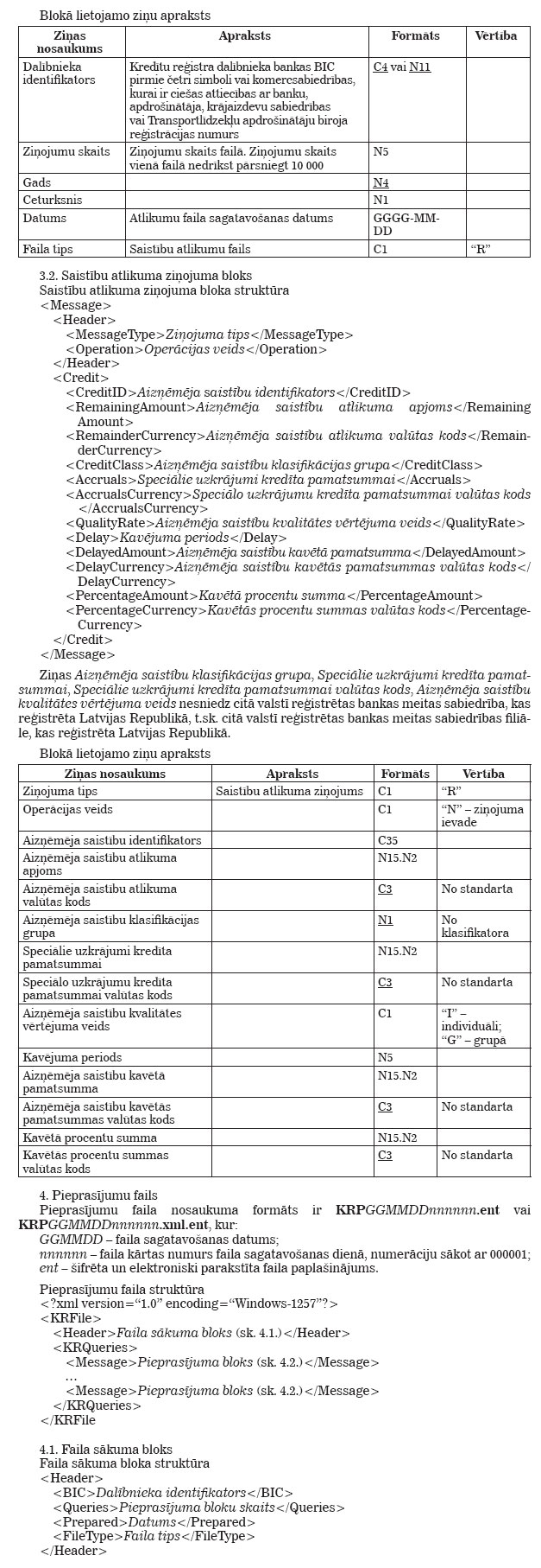 Latvijas Bankas 2009. gada 12. marta noteikumi Nr. 33 "Kredītu reģistra tehniskie noteikumi". Publicēts oficiālajā laikrakstā "Latvijas Vēstnesis", 24.03.2009., Nr. 46 https://www.vestnesis.lv/ta/id/189595