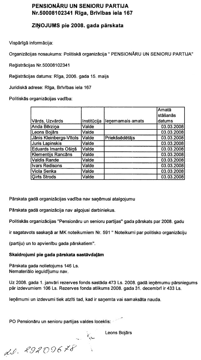 Darbības pārskati. Publicēts oficiālajā laikrakstā "Latvijas Vēstnesis", 27.03.2009., Nr. 49 https://www.vestnesis.lv/ta/id/189794