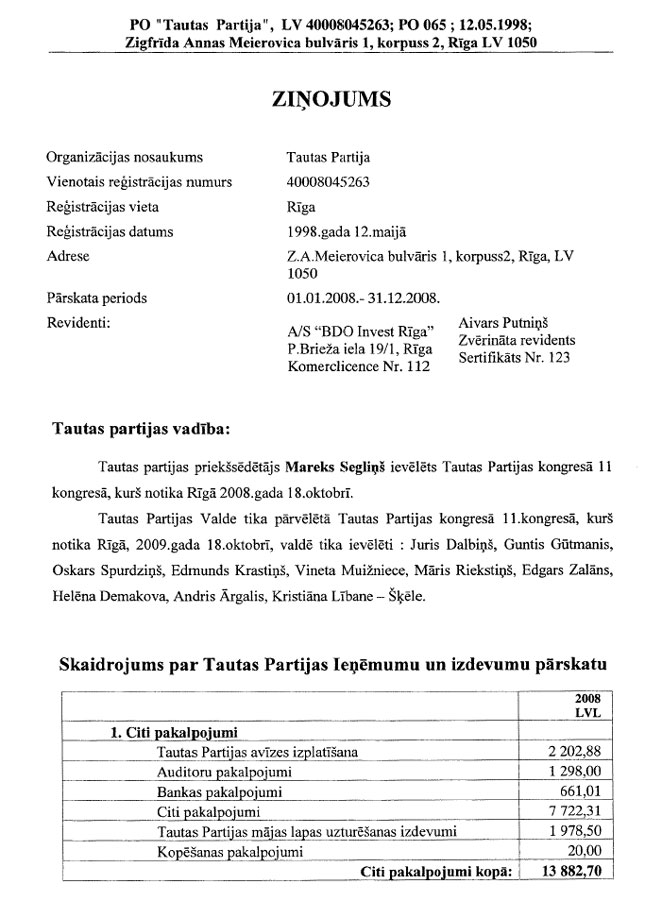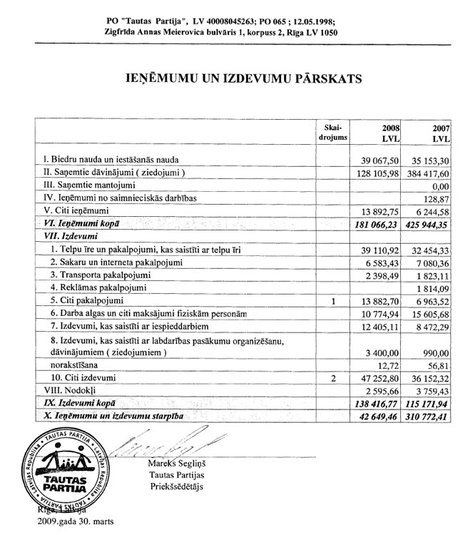 Darbības pārskati. Publicēts oficiālajā laikrakstā "Latvijas Vēstnesis", 9.04.2009., Nr. 56 https://www.vestnesis.lv/ta/id/190423