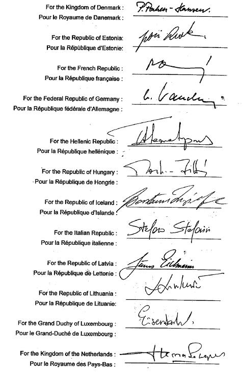 Šis Protokols, kura teksts angļu un franču valodā ir vienlīdz autentisks, glabājas Amerikas Savienoto Valstu valdības arhīvā. Pienācīgā kārtībā apstiprinātas kopijas Amerikas Savienoto Valstu valdība nodod visu Ziemeļatlantijas līgumslēdzēju pušu valdībām.