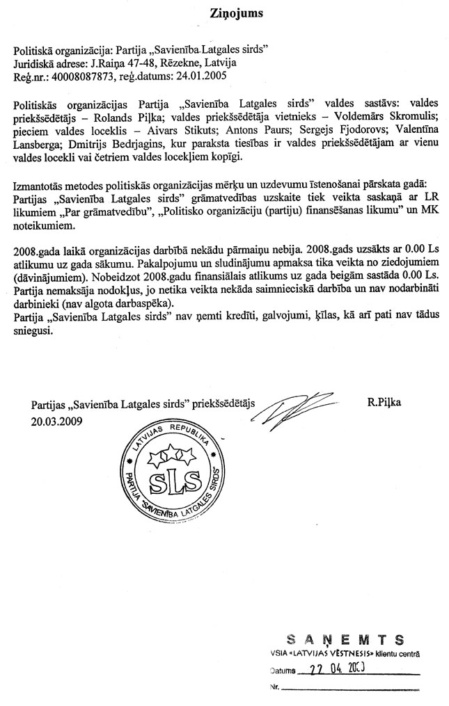 Bankas padome un valde apstiprināja izsniegšanai konsolidētos finanšu pārskatus 2009.gada 23.martā un tos ir parakstījuši Bankas padome un valdes vārdā: