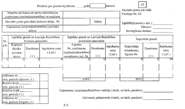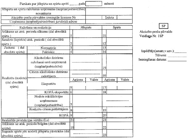 23. Pārskatus par alkohola apriti, izejvielu (graudu, jēlspirta, spirta, spirtu saturošu izejvielu) iepirkumiem un līgumu izpildi Akcizēto preču pārvaldei saskaņā ar šo noteikumu pielikumiem sniedz uzņēmums, kurš saņēmis attiecīgu licenci: