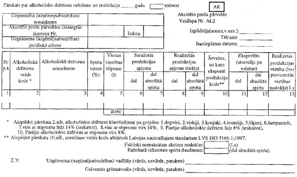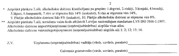 2.4. uzņēmuma paziņojumu par norēķinu kontiem, kuri tiks izmantoti norēķiniem par darījumiem ar alkoholu;