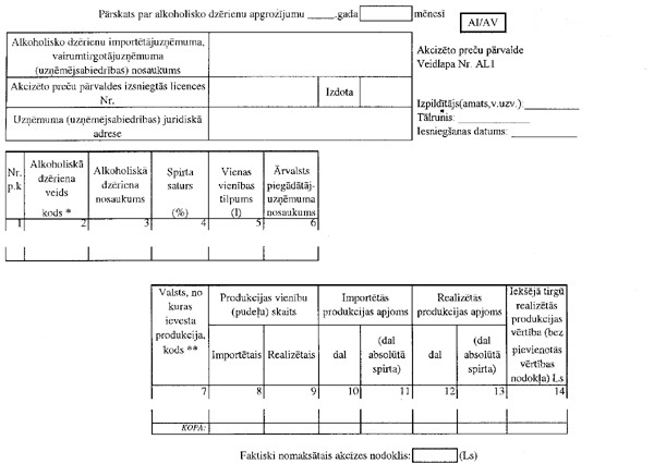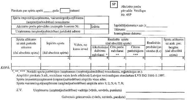 6.4. alkohola pārvadāšanai izmantotā transportlīdzekļa reģistrācijas numurs un transportlīdzekļa vadītāja vārds, uzvārds;