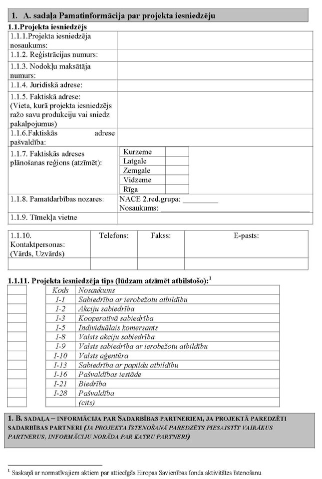 1.3. prasības Eiropas Reģionālās attīstības fonda projekta iesniedzējam;
