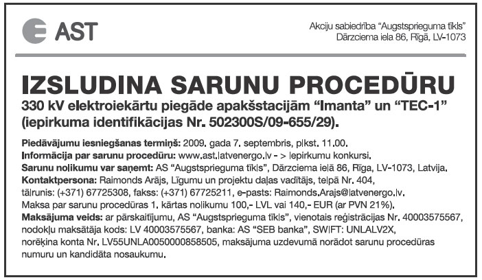 Piedāvājumu iesniegšanas termiņš 2009.gada 17.augusts plkst.12.
