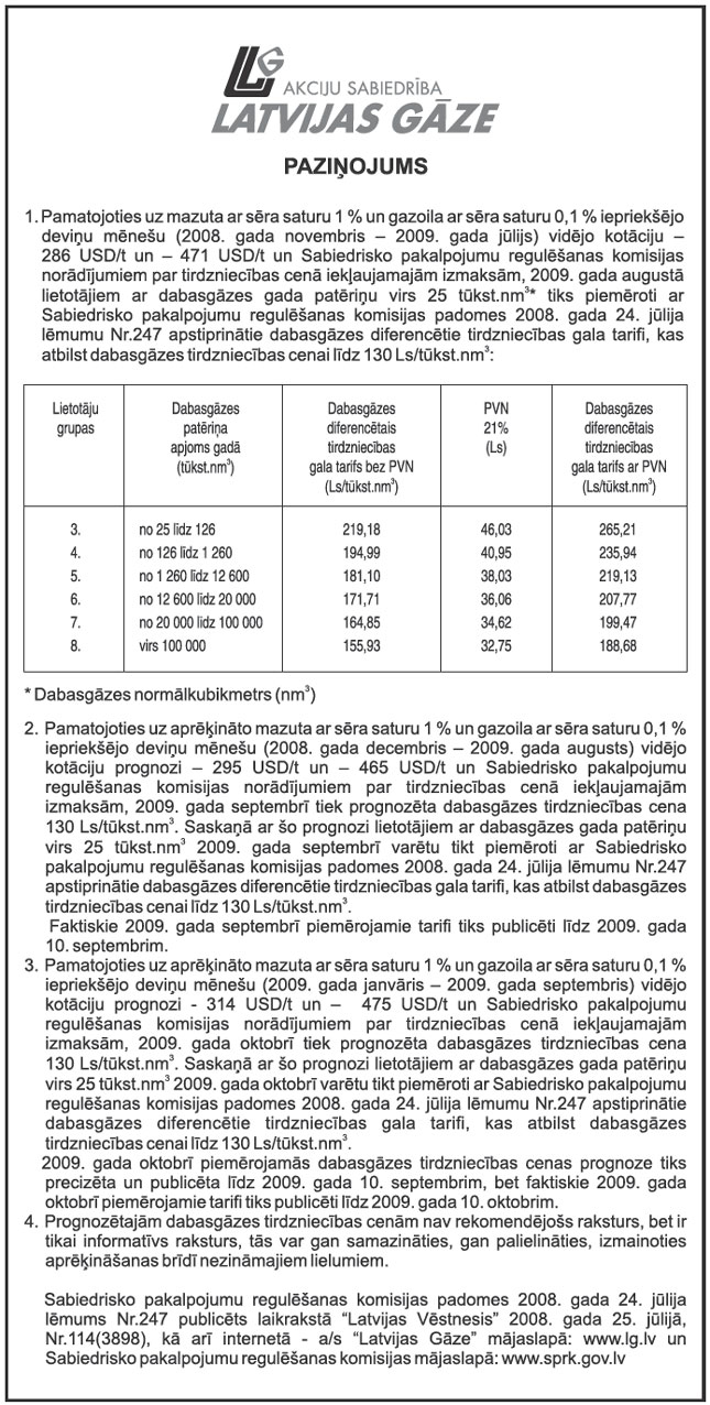 Tiesu administrācija paziņo, ka 2009.gada 27.jūlijā ir