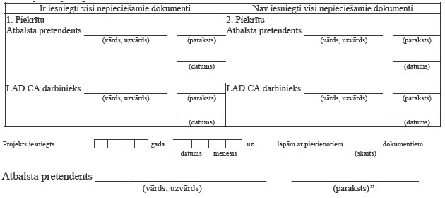 1. * Izsniedzot dokumenta kopiju, atbalsta pretendents apliecina tās atbilstību oriģinālam (uz dokumenta ir atzīme “KOPIJA PAREIZA”, apliecinātājas amatpersonas pilns amata nosaukums, vārds, uzvārds, paraksts, apliecinājuma vietas nosaukums, apliecinājuma datums, zīmoga nospiedums), kā arī uzrāda oriģinālu.