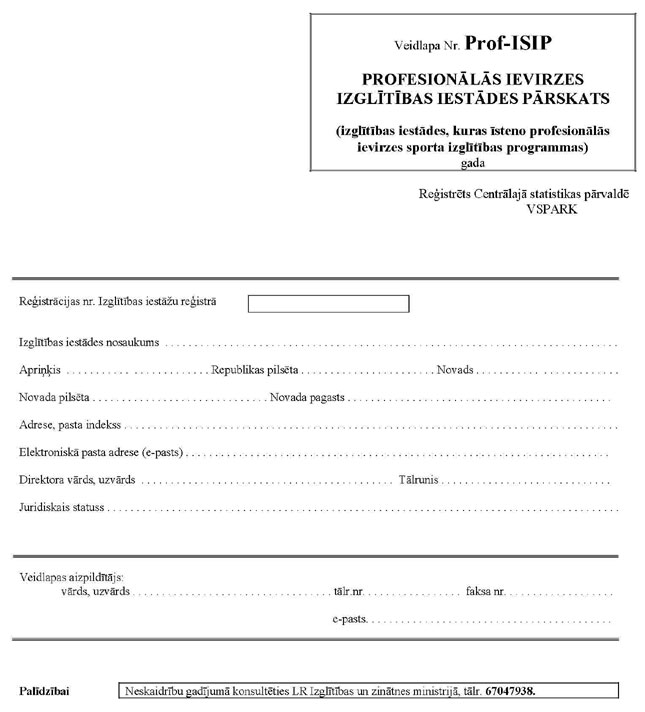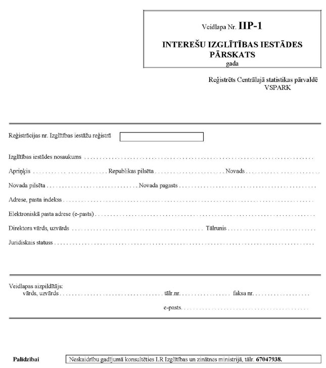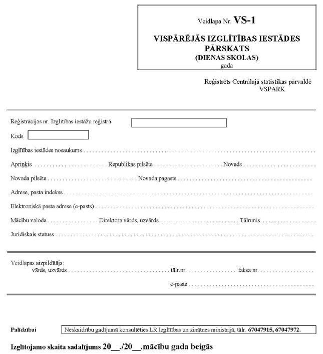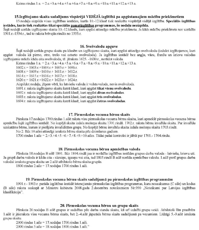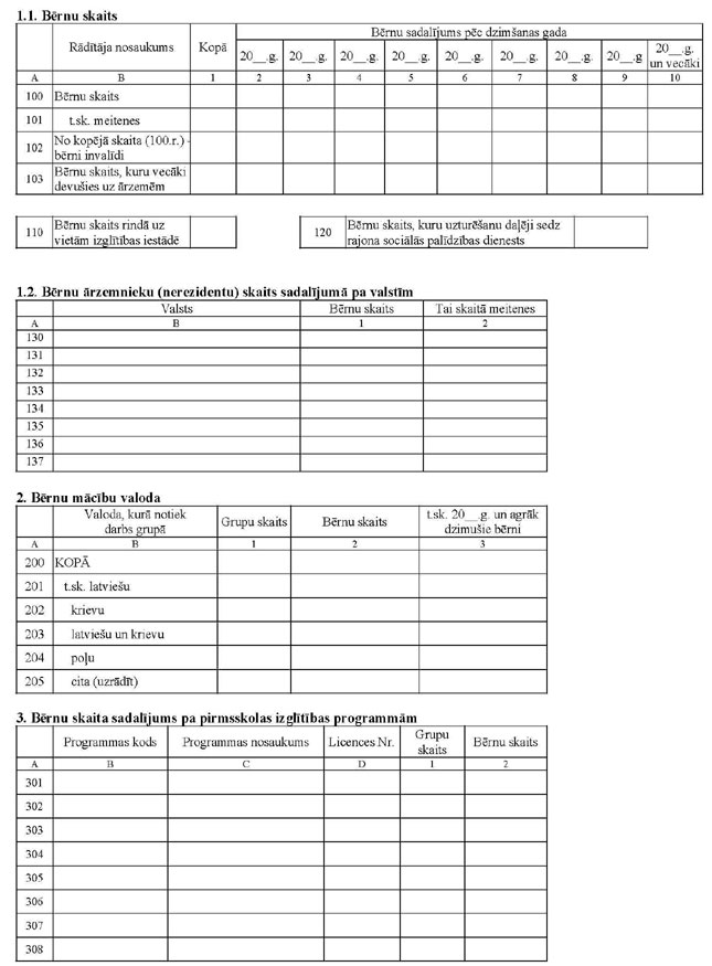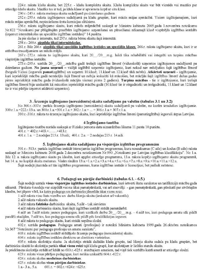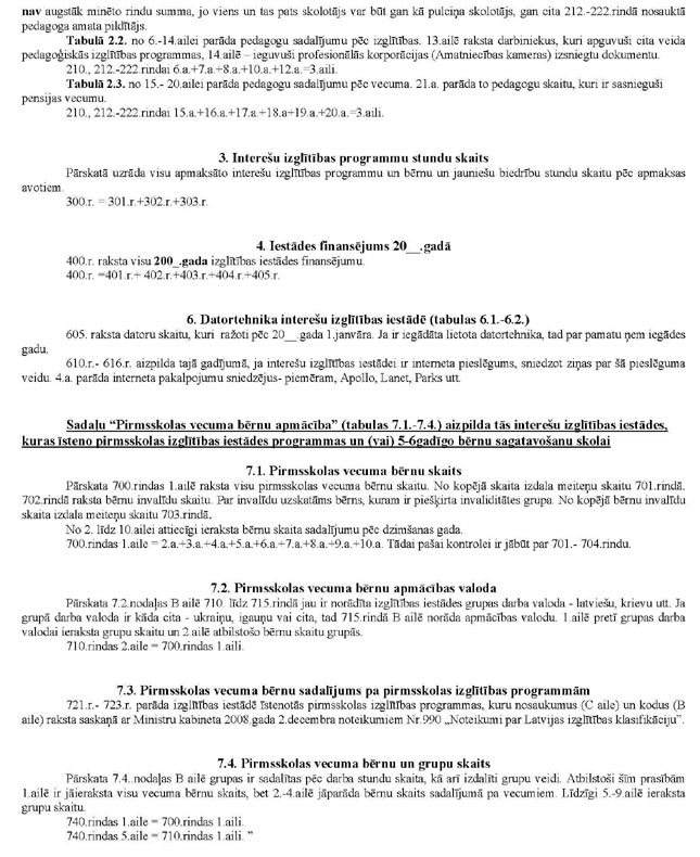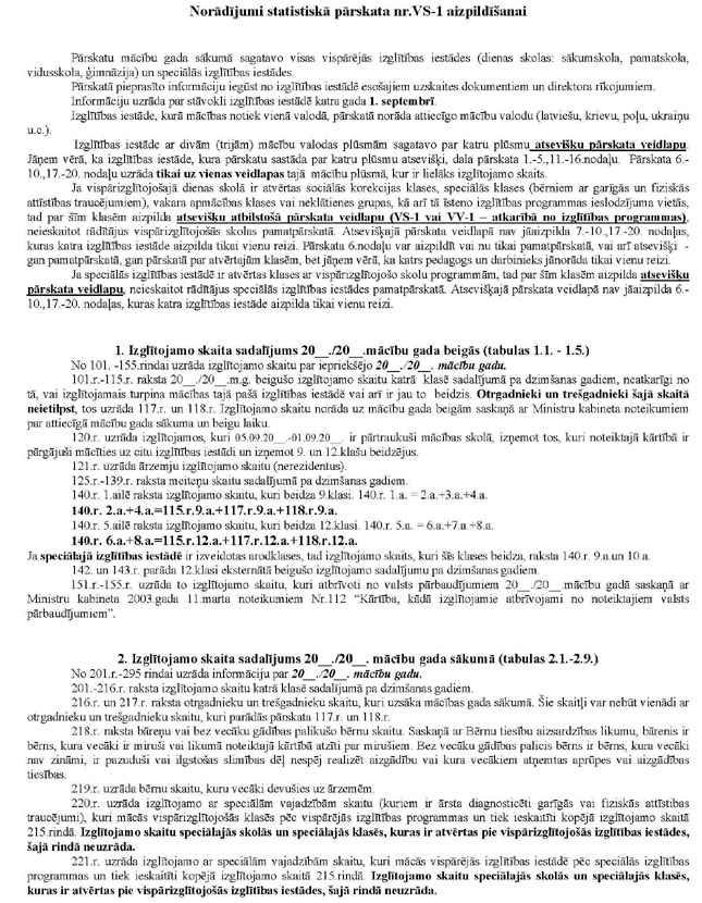 “2.5. Pirmsskolas izglītības iestādes pārskats (VSP-1) (5.pielikums). Veidlapu aizpilda pirmsskolas izglītības iestādes saskaņā ar VSP-1 veidlapā minētajiem norādījumiem.”