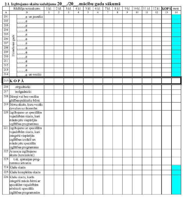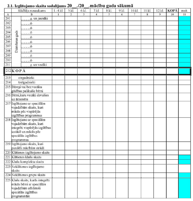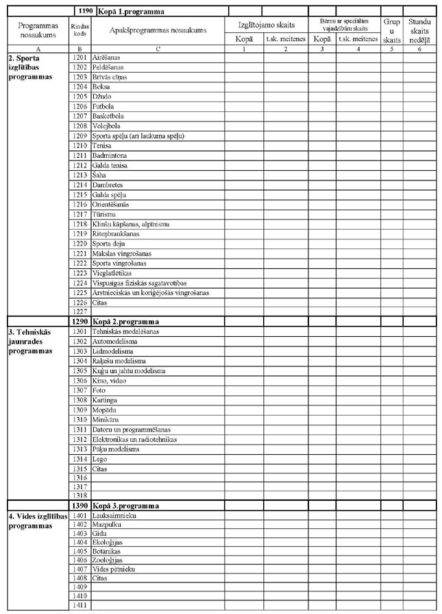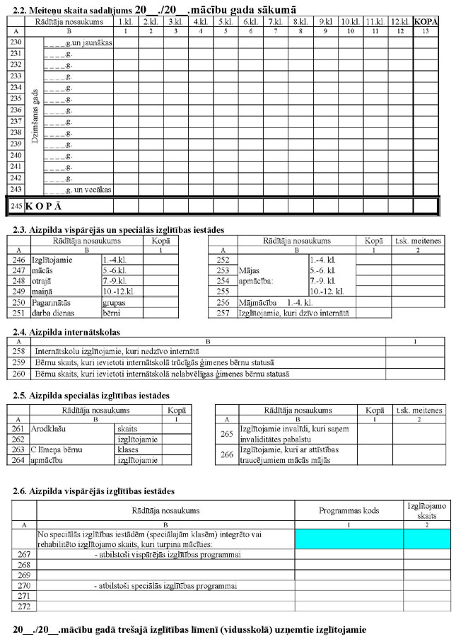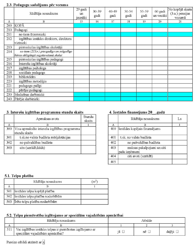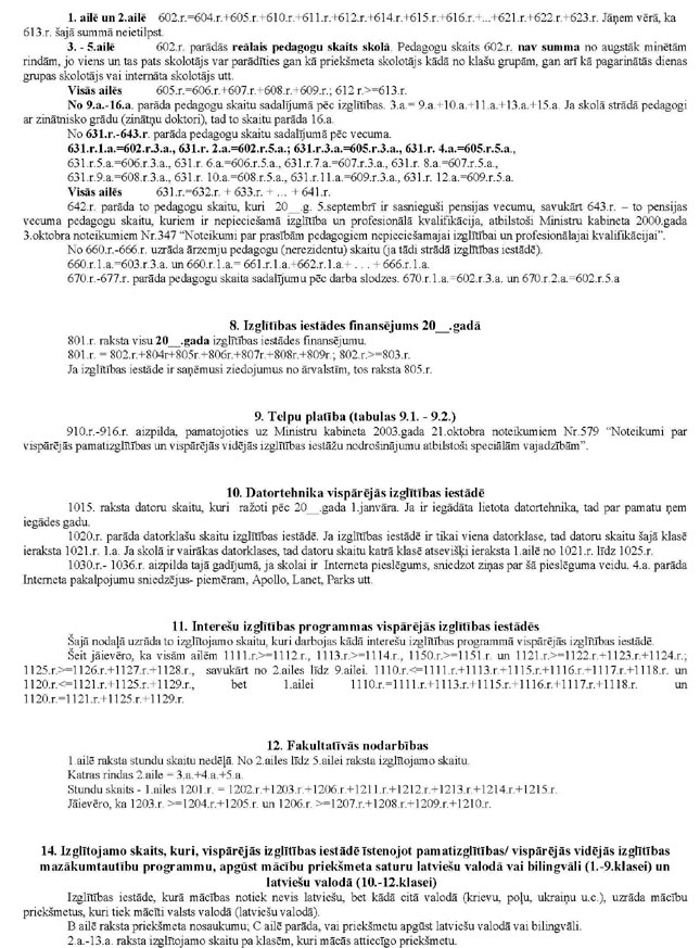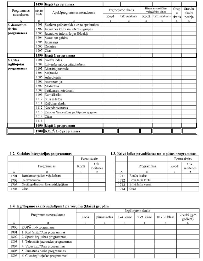 “2.5. Pirmsskolas izglītības iestādes pārskats (VSP-1) (5.pielikums). Veidlapu aizpilda pirmsskolas izglītības iestādes saskaņā ar VSP-1 veidlapā minētajiem norādījumiem.”