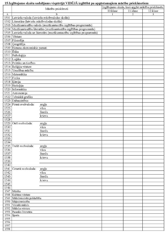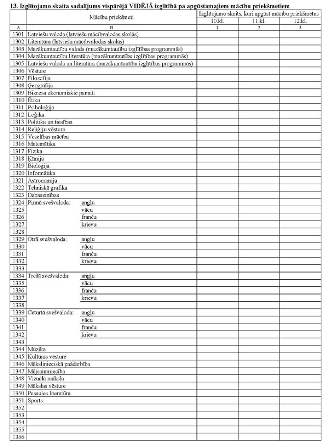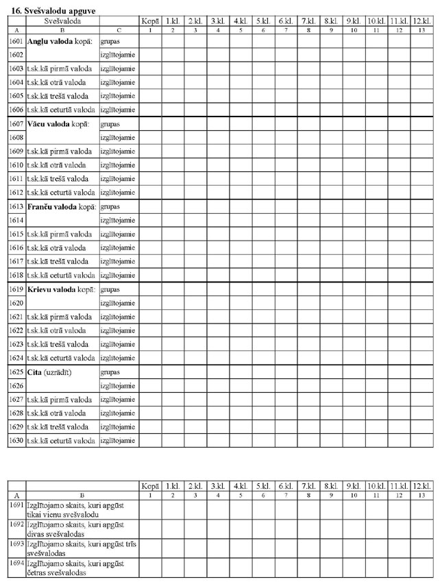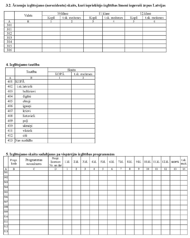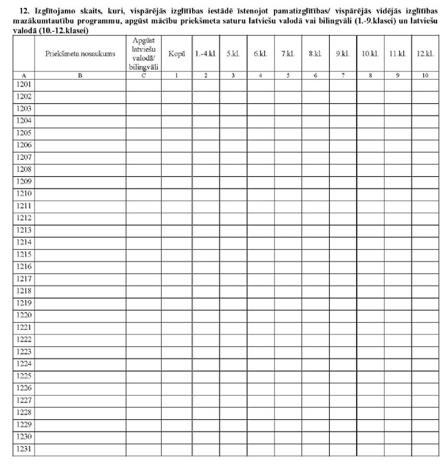 Izdarīt Ministru kabineta 2008.gada 25.augusta noteikumos Nr.695 “Noteikumi par izglītības valsts statistikas pārskatu veidlapu paraugiem” (Latvijas Vēstnesis, 2008, 137.nr.) šādus grozījumus: