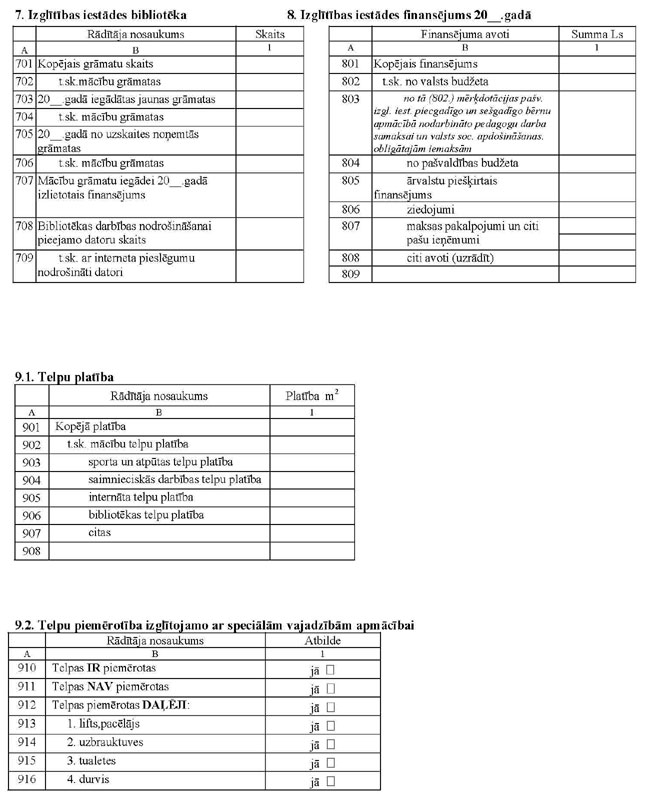 Grozījumi Ministru kabineta 2008.gada 25.augusta noteikumos Nr.695 “Noteikumi par izglītības valsts statistikas pārskatu veidlapu paraugiem”