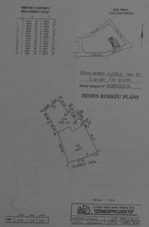| 2. | Rīgā, Audēju ielā 10 | 628 | 01000020134 |
