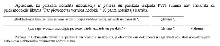Pārskats par pievienotās vērtības nodokļa summām, kuras struktūrfonda finansējuma saņēmējs