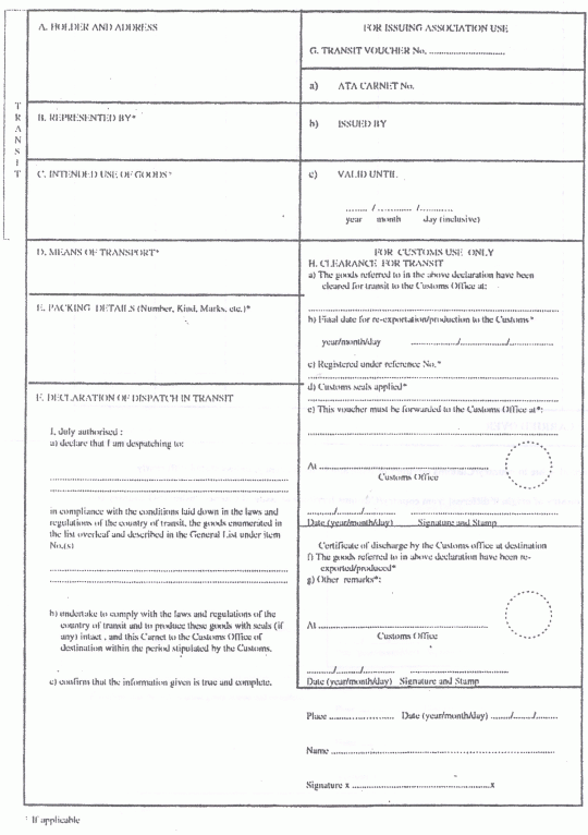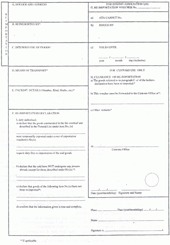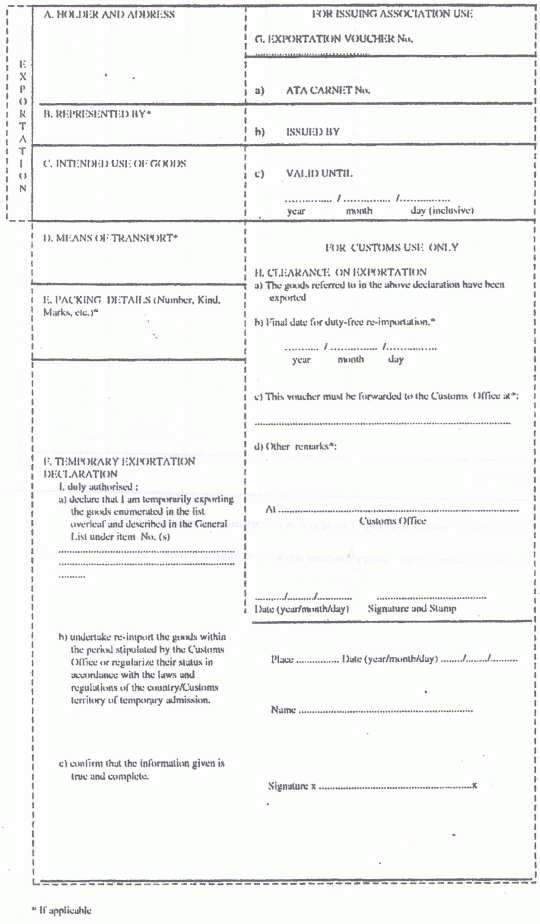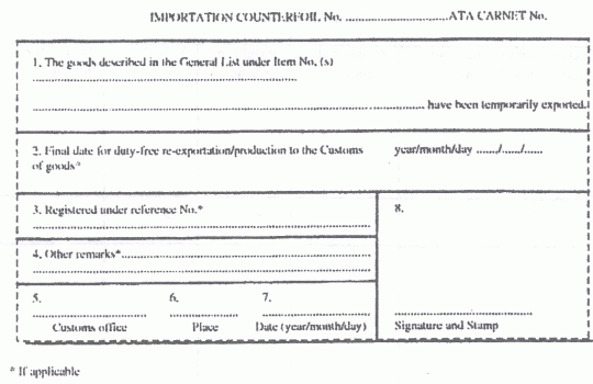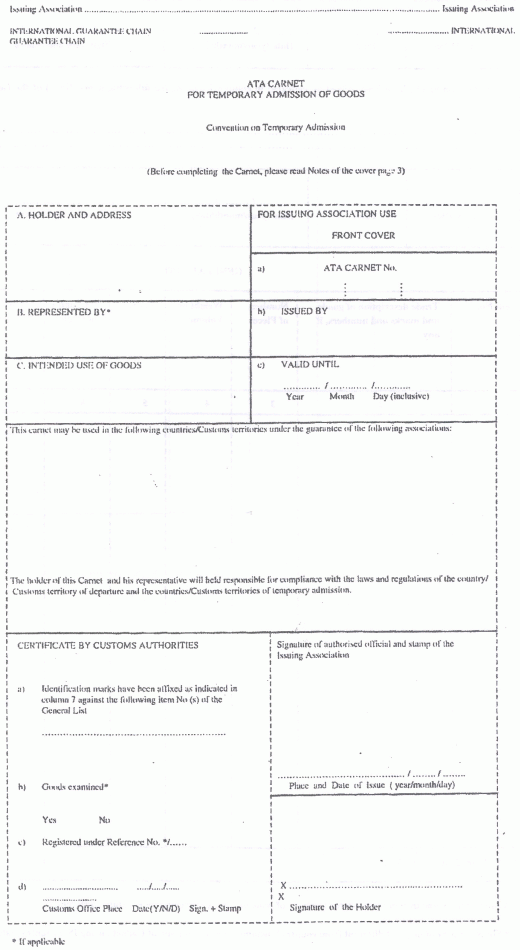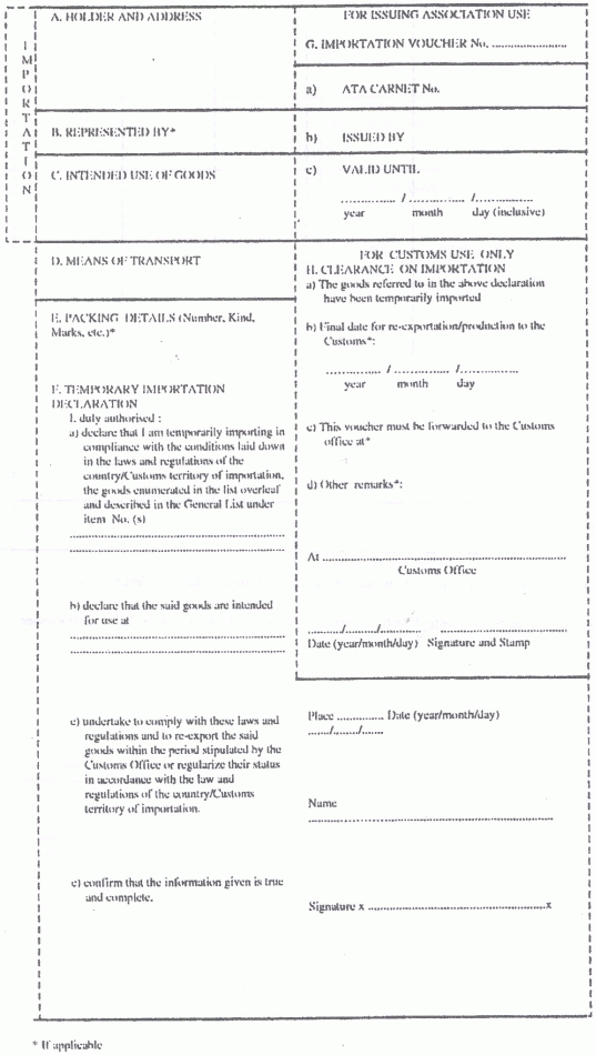 (d) "temporary admission papers" means: the international Customs document accepted as a Customs declaration which makes it possible to identify goods (including means of transport) and which incorporates an internationally valid guarantee to cover import duties and taxes;