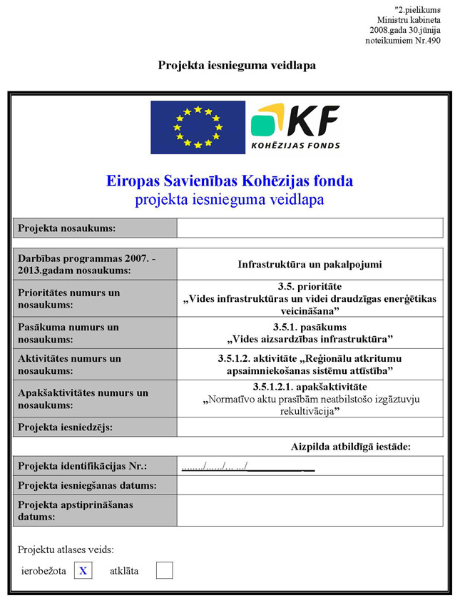Grozījumi Ministru kabineta 2008.gada 30.jūnija noteikumos Nr.490 “Noteikumi par darbības programmas “Infrastruktūra un pakalpojumi” papildinājuma 3.5.1.2.1.apakšaktivitāti “Normatīvo aktu prasībām neatbilstošo izgāztuvju rekultivācija””