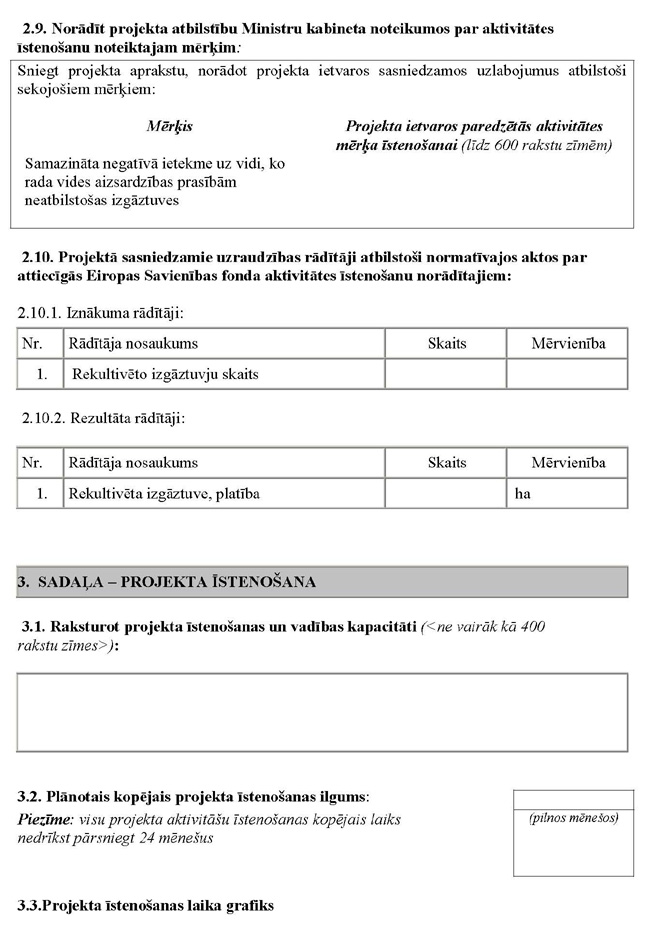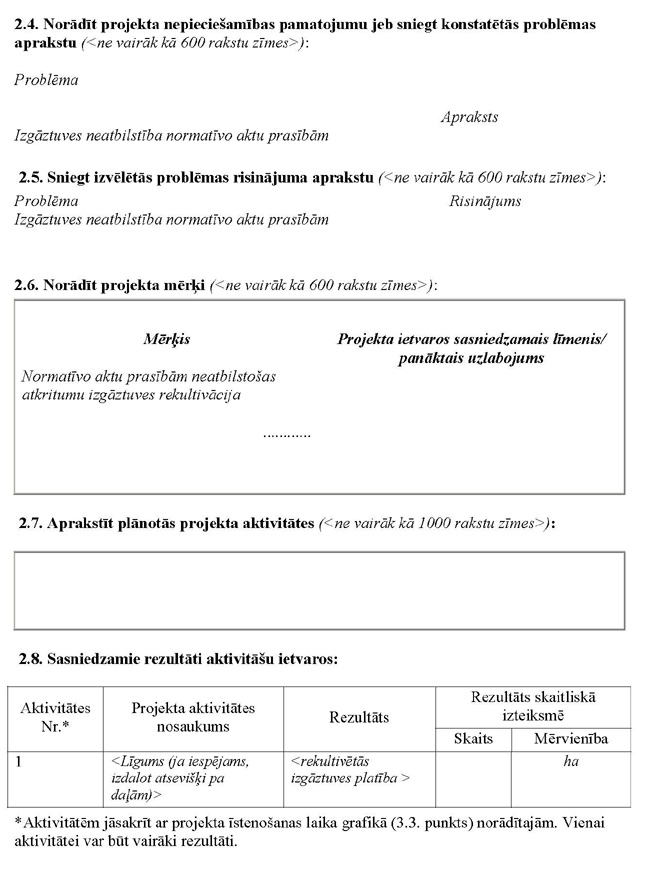 Projekta iesniegums attiecas uz tādas sadzīves atkritumu izgāztuves rekultivāciju, kas iekļauta Ministru kabineta 2008. gada 30.jūnija noteikumu Nr. 490 „Noteikumi par darbības programmas „Infrastruktūra un pakalpojumi” papildinājuma 3.5.1.2.1.apakškativitāti „Normatīvo aktu prasībām neatbilstošo izgāztuvju rekultivācija”” 1. pielikumā |