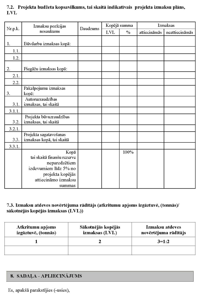 “10.1. ar ietekmes uz vidi novērtējumu (ja tāds ir nepieciešams) saistītās dokumentācijas izstrādes izmaksas, būvprojekta izstrādes un ar to saistītās būvekspertīzes izmaksas, kas pārsniedz trīs procentus no Kohēzijas fonda projekta iesniegumā plānotajām kopējām attiecināmajām izmaksām;”.