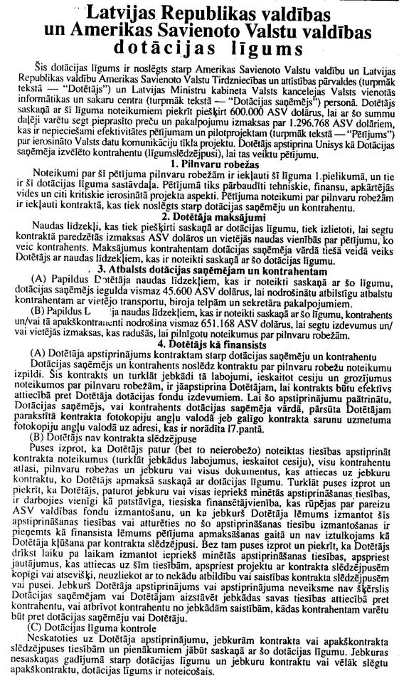 1. Akceptēt Latvijas Republikas valdības un Amerikas Savienoto Valstu valdības līguma projektu par finansiālo palīdzību Latvijas Republikas valsts nozīmes datu pārraides tīkla izveidei.
