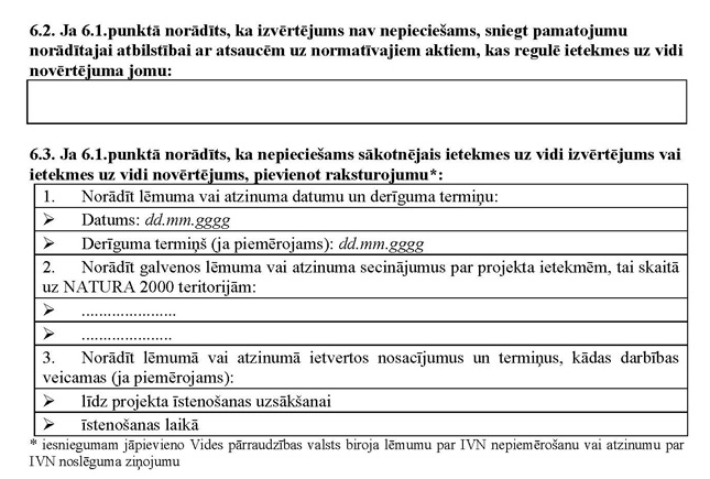 | 36.1. | Vides pārraudzības valsts biroja atzinums par ietekmes uz vidi novērtējuma noslēguma ziņojumu vai lēmums par ietekmes uz vidi novērtējuma procedūras nepiemērošanu | ||