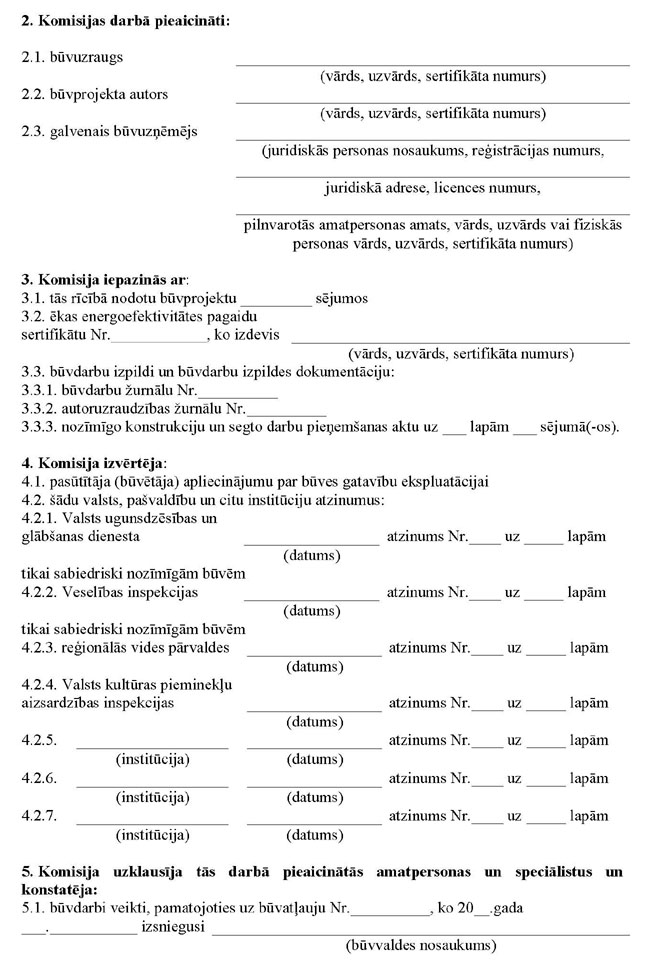 “Noteikumi par būvju pieņemšanu ekspluatācijā” (Latvijas