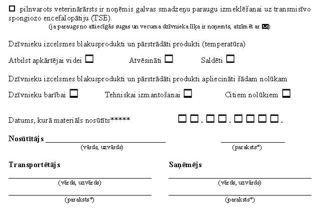 5.6.1. Eiropas Parlamenta un Padomes regulas Nr.1774/2002 7.panta 2.punkta prasībām – blakusproduktiem un pārstrādātiem produktiem, ko transportē ārpus Latvijas teritorijas;