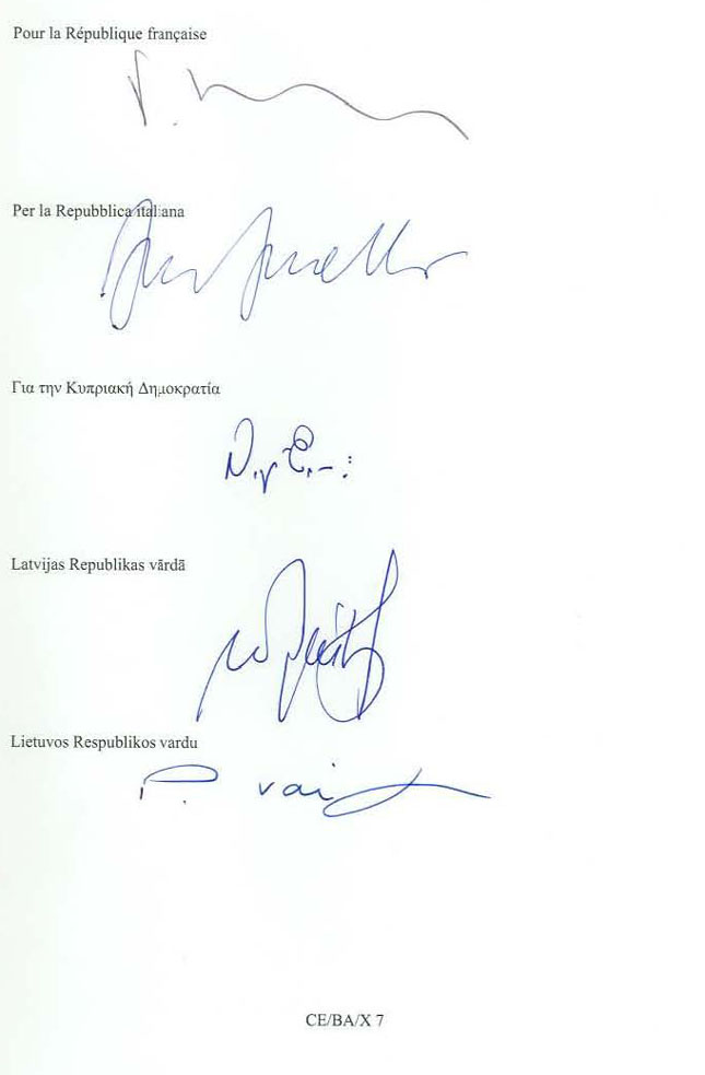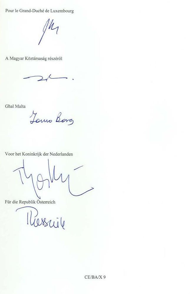 Састављено у Луксембургу, шеснаестога јуна двије хиљаде осме године.
