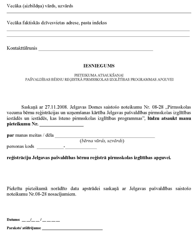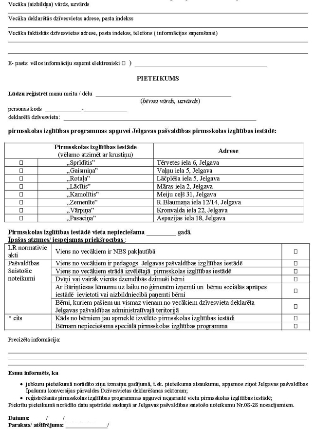 Grozījumi saistošajos noteikumos Nr.08-28 "Pirmsskolas vecuma bērnu reģistrācijas un uzņemšanas kārtība Jelgavas pašvaldības pirmsskolas izglītības iestādēs un iestādēs, kas īsteno pirmsskolas izglītības programmas"