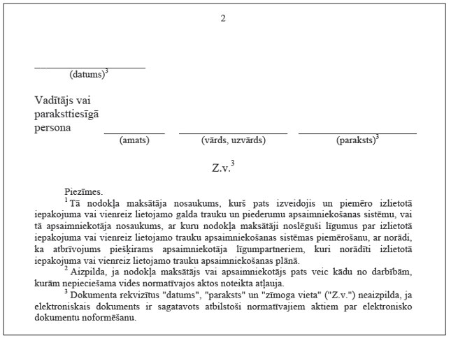 8. Nodokļa maksātājs, kurš pats izveidojis un piemēro apsaimniekošanas sistēmu, iesniedzot fonda administrācijā apsaimniekošanas plānu, neiesniedz šo noteikumu 2.pielikuma 6. un 9.punktā norādīto tabulu.