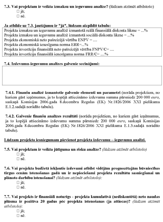 7. Svītrot 17.punktā vārdus un skaitli “vai projekta kopējās izmaksas ir vismaz 35 140 200 latu, bet projekta iesniegums nav sagatavots iesniegšanai Eiropas Komisijā”.
