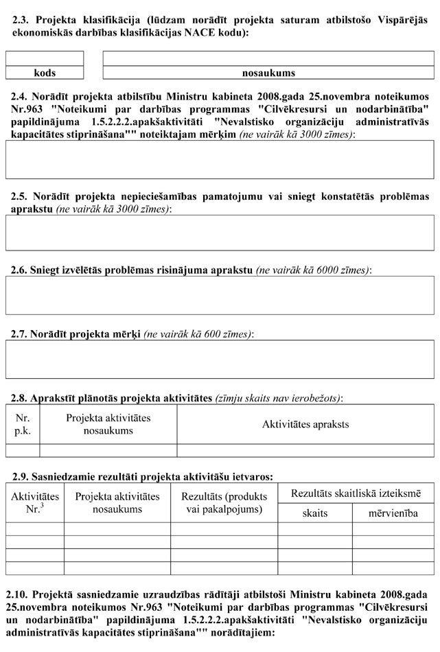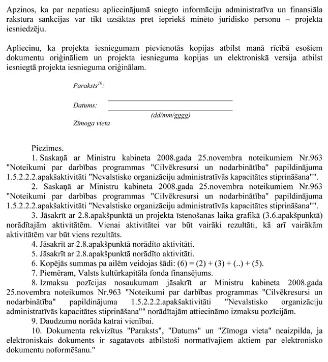 Grozījumi Ministru kabineta 2008.gada 25.novembra noteikumos Nr.963 "Noteikumi par darbības programmas "Cilvēkresursi un nodarbinātība" papildinājuma 1.5.2.2.2.apakšaktivitāti "Nevalstisko organizāciju administratīvās kapacitātes stiprināšana""
