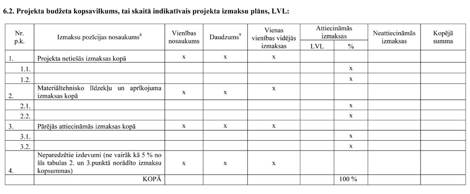 "Projekta iesniedzējs, plānojot projekta attiecināmās izmaksas, nodrošina savu finansējumu vismaz septiņu procentu apmērā no projekta kopējo attiecināmo izmaksu summas."