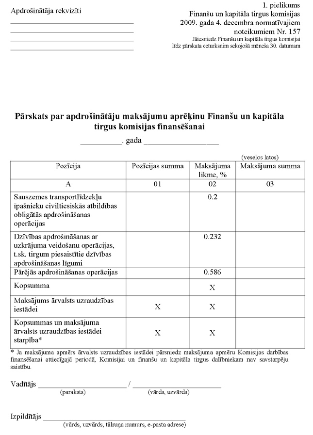 6.1. apdrošinātājiem "Pārskats par apdrošinātāju maksājumu aprēķinu Finanšu un kapitāla tirgus komisijas finansēšanai" (1.pielikums);