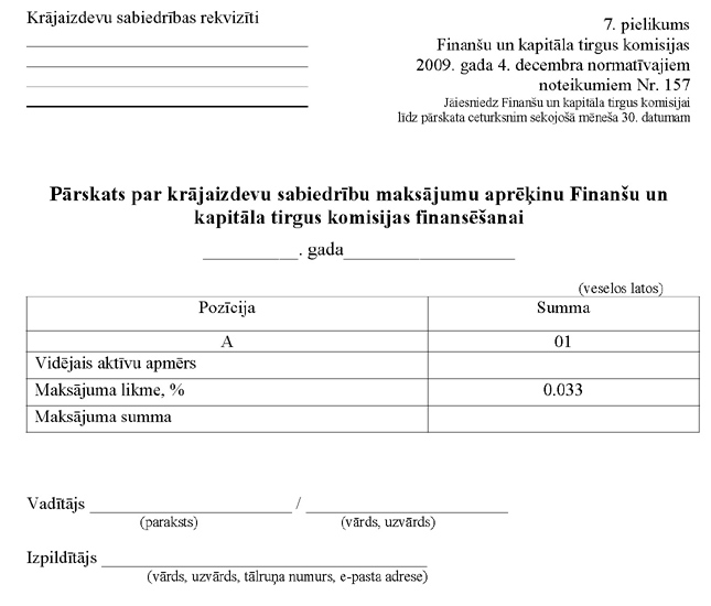 6.7. krājaizdevu sabiedrībām "Pārskats par krājaizdevu sabiedrību maksājumu aprēķinu Finanšu un kapitāla tirgus komisijas finansēšanai" (7.pielikums);