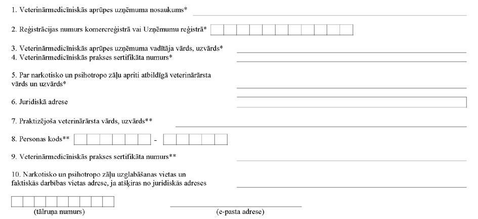 16.2. praktizējošā veterinārārsta vārds, uzvārds, veterinārmedicīniskās prakses sertifikāta numurs, adrese, tālruņa numurs vai elektroniskā pasta adrese, ja pieprasījumu izraksta praktizējošs veterinārārsts;
