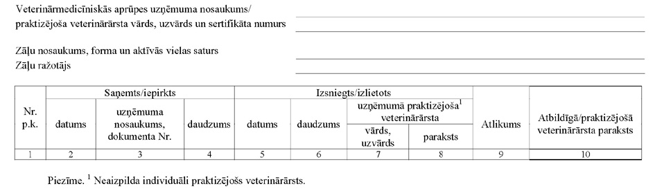 19.1. zāļu nosaukums, ražotājs un sērijas numurs, nodrošinot iespēju identificēt konkrētu zāļu lietošanu katram dzīvniekam;