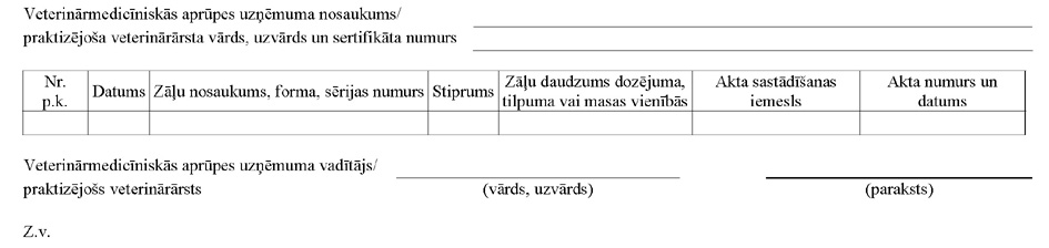 26.6. aktu par narkotisko un psihotropo zāļu iztrūkumu, pārpalikumu vai bojājumu glabā piecus gadus un reģistrē narkotisko un psihotropo zāļu iztrūkuma, pārpalikuma vai bojājuma reģistrācijas veidlapā (3.pielikums).