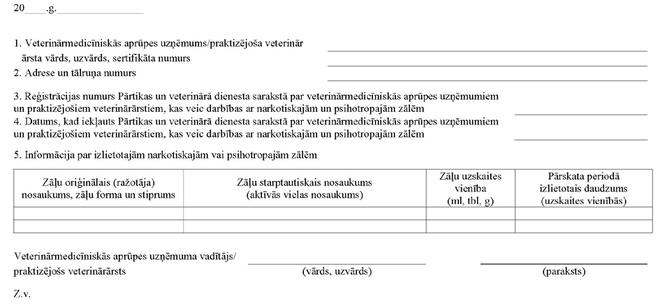 20.5. tā praktizējošā veterinārārsta paraksts, kurš lietojis zāles dzīvniekam, ja slimo dzīvnieku uzskaites sistēma ir noformēta papīra formā.