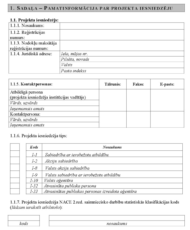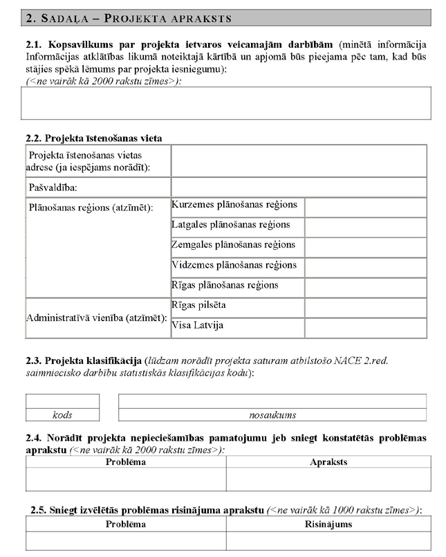 | 35. | Projekta iesnieguma veidlapā aizpildītas visas tās sadaļas |