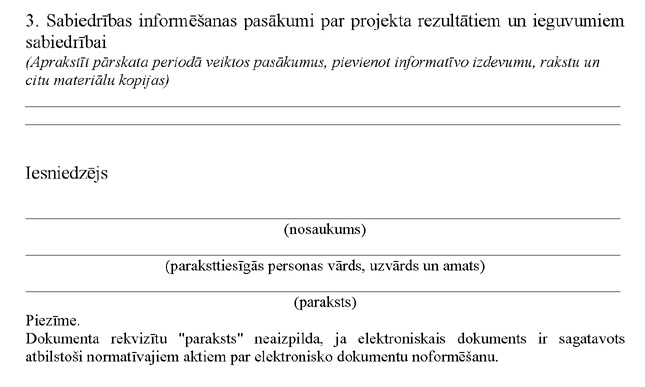 | 33. | Projekta iesniegums parakstīts ar drošu elektronisko parakstu (ja projekta iesniegums iesniegts elektroniskā dokumenta formā) |
