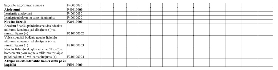 30.2. deponēto līdzekļu kontā Valsts kasē, kas atvērts budžeta izpildītājam attiecīgās programmas vai apakšprogrammas atlikumu uzskaitei līdz to ieplānošanai budžetā. Pēc šo līdzekļu ieplānošanas budžetā, budžeta izpildītājs iesniedz Valsts kasē iesniegumu par līdzekļu atlikumu pārgrāmatošanu uz norādīto valsts pamatbudžeta izdevumu kontu, piemērojot atbilstošo finansēšanas klasifikācijas kodu.