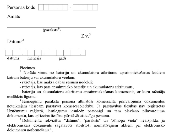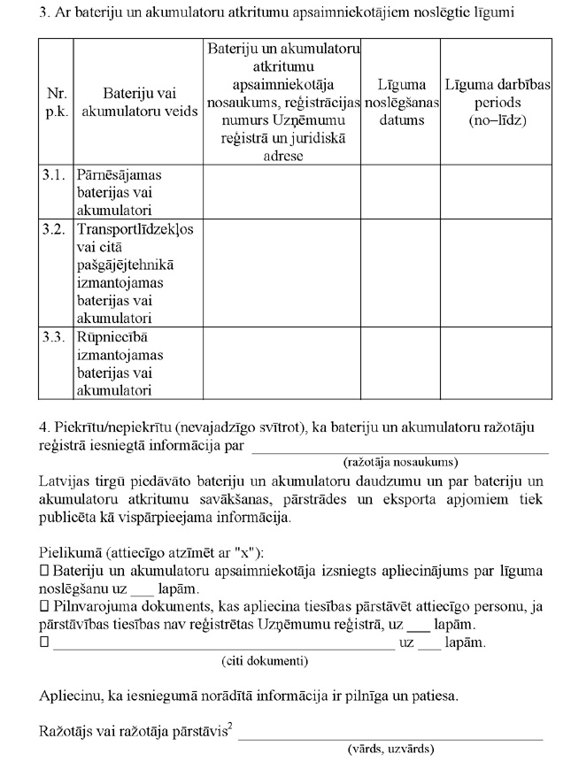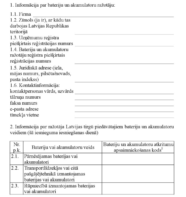 Iesniegums par bateriju un akumulatoru ražotāja reģistrāciju