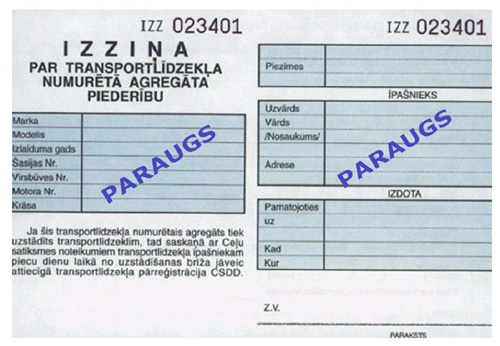 4.3. izziņu par transportlīdzekļa numurētā agregāta piederību (3.pielikums);