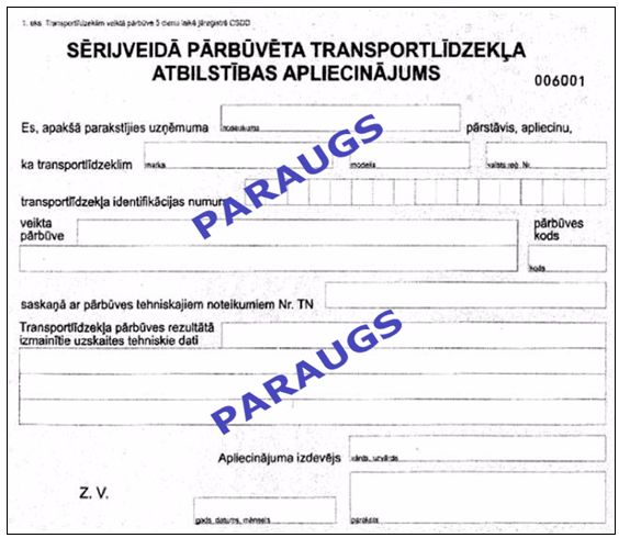 22.1. pašbūvēta transportlīdzekļa reģistrācijai, izņemot, ja transportlīdzeklim noteiktā kārtībā ir piešķirts identifikācijas numurs;