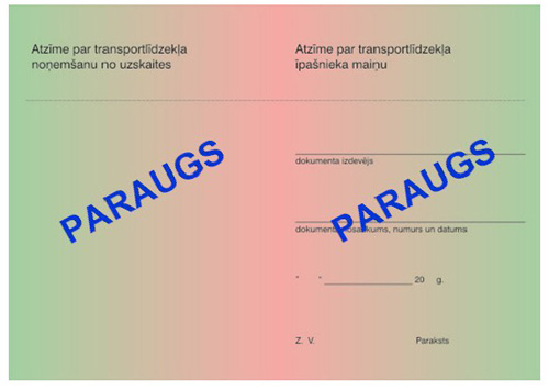 26. "Atzīme par transportlīdzekļa noņemšanu no uzskaites" – ieraksti par transportlīdzekļa noņemšanu no uzskaites un ierakstu izdarīšanas datums, kuru CSDD darbinieks apliecina ar parakstu un reģistrācijas dokumentu apliecināšanai paredzēto zīmogu.