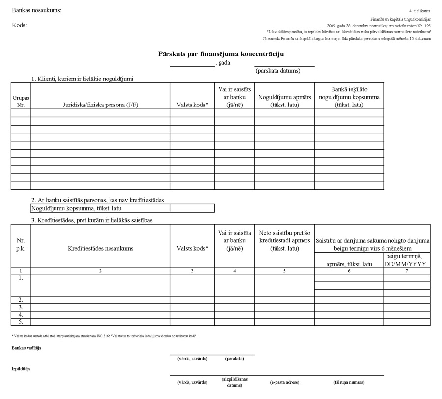 55. Banka "Pārskatu par finansējuma koncentrāciju" sagatavo atbilstoši noteikumu 4. pielikumā noteiktajai veidlapai, kurā uzrāda šādu informāciju: