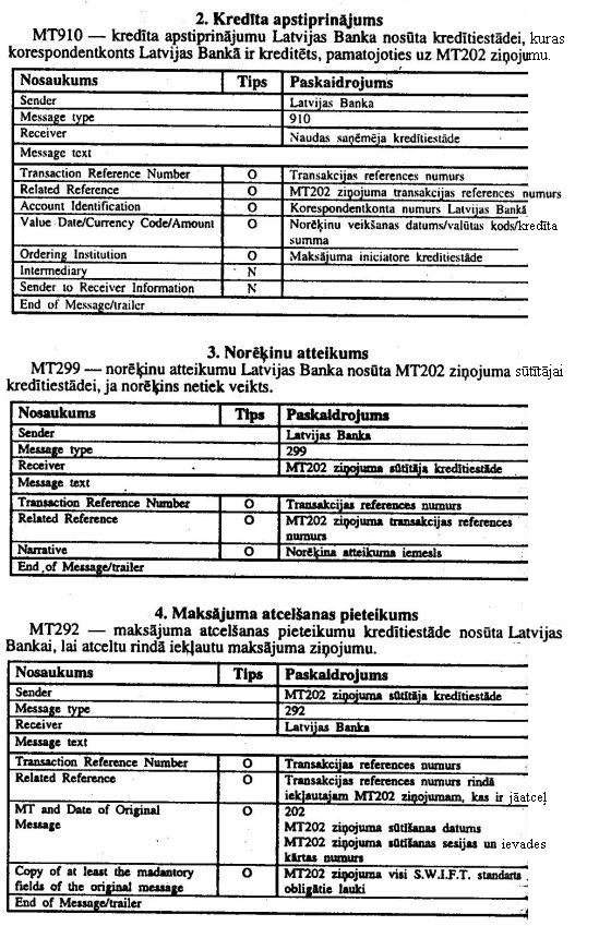 2.2. Latvijas Banka kredītiestādes kredīta maksājumus pieņem kā papīra dokumenta formā, tā elektroniskā ziņojuma formā, kredītiestādes debeta maksājumus - tikai papīra dokumenta formā.