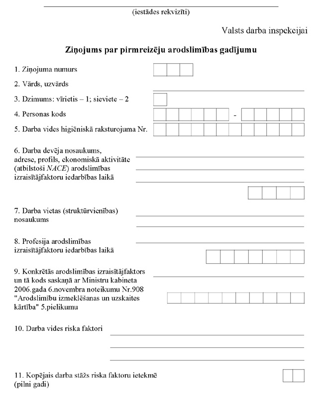 16.1 1. ja zināms, ka darba vieta, kurā pastāvējuši kaitīgie faktori, kas bijuši iespējamās arodslimības cēlonis, likvidēta;